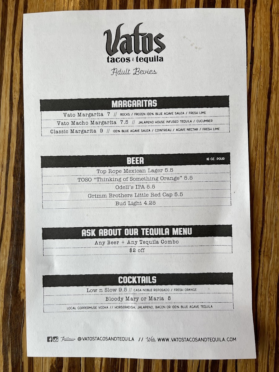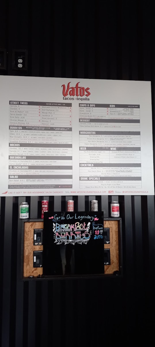 Vatos Tacos Tequila at The Foundry Menu